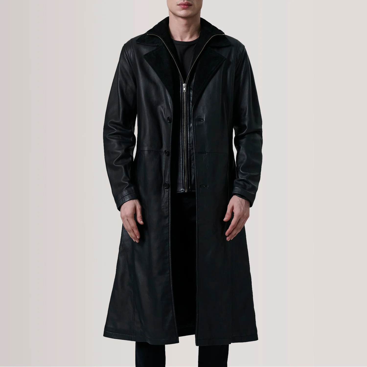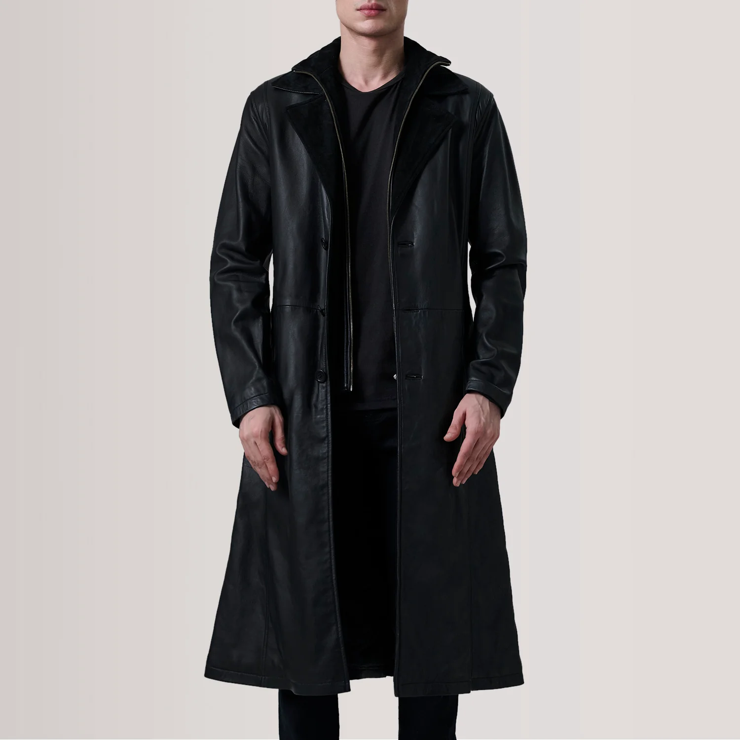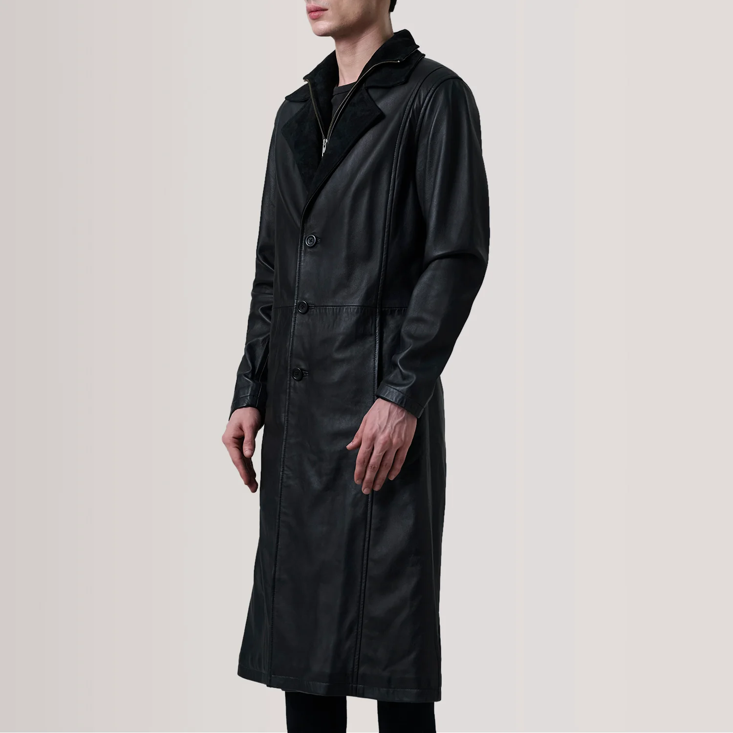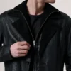 Charlton Black Leather Single Breasted Coat