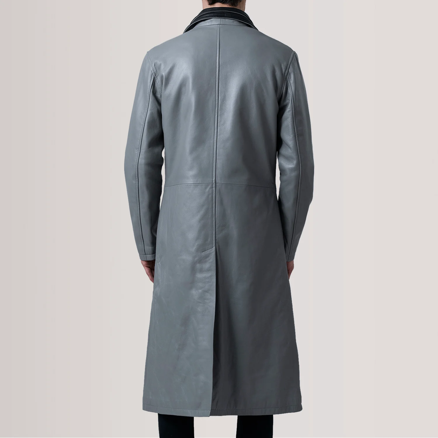Charlton Grey Leather Single Breasted Coat - Image 6