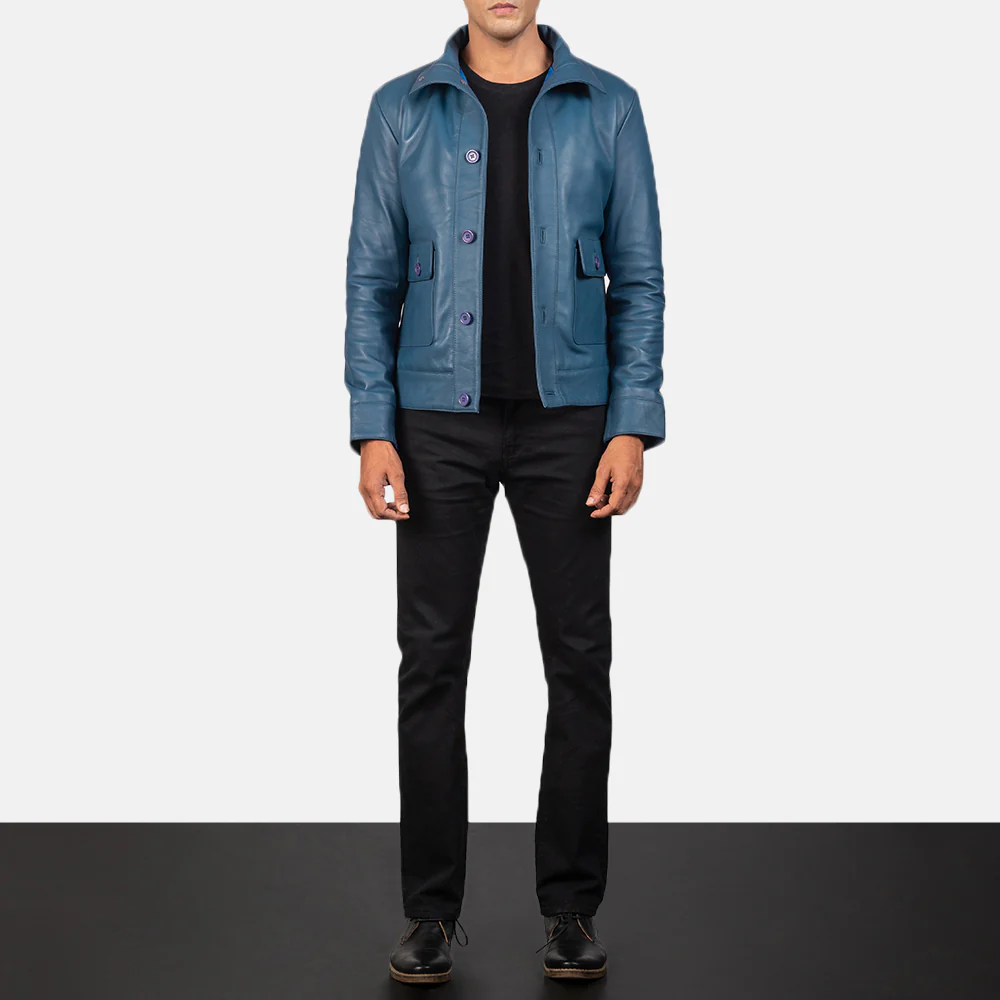 Columbus Blue Leather Bomber Jacket