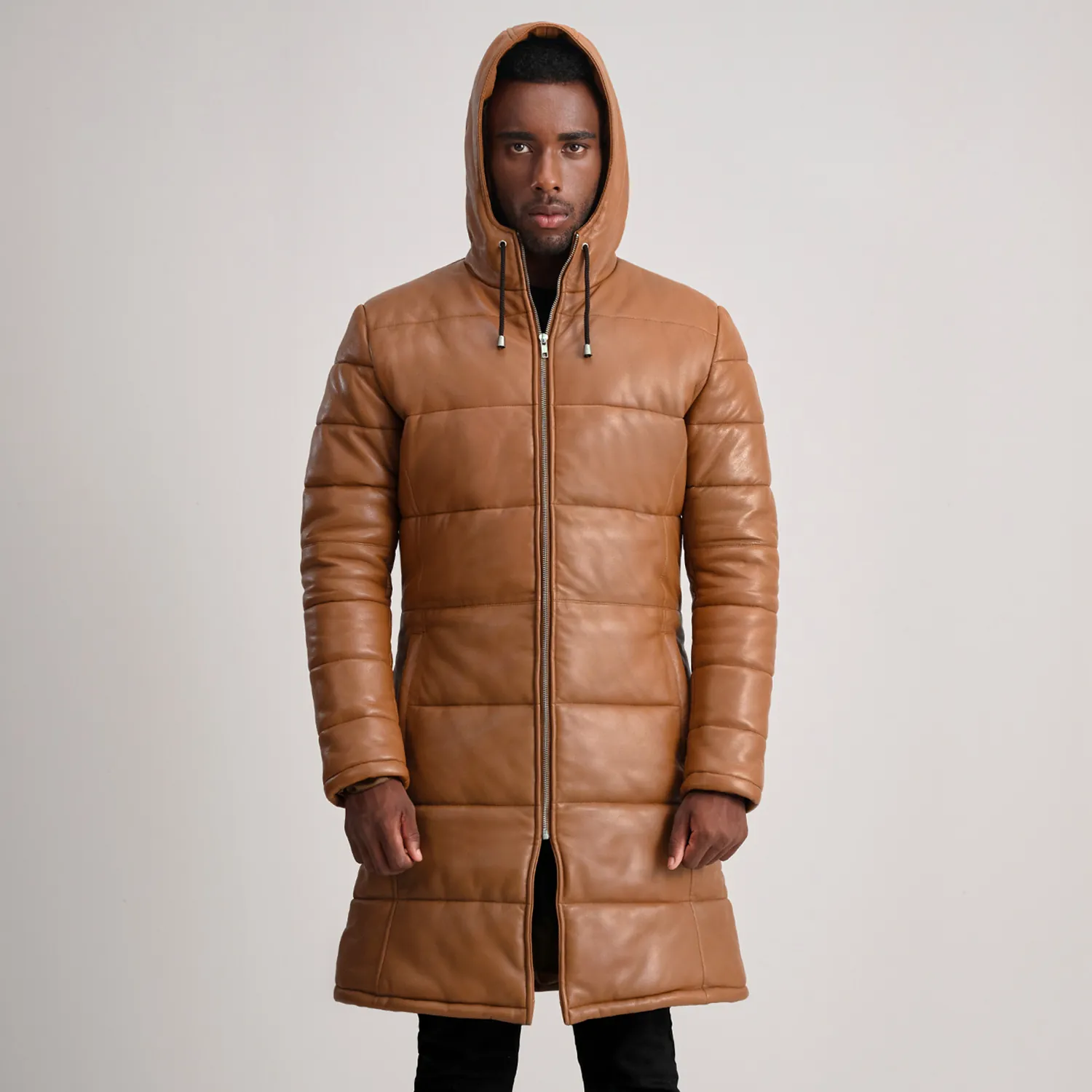 Floyd Tan Hooded Leather Puffer Coat