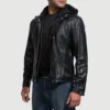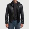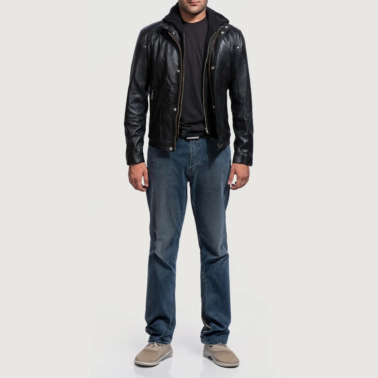 Hector Black Hooded Leather Biker JacketAlternative view of Hector Black Hooded Leather Biker Jacket