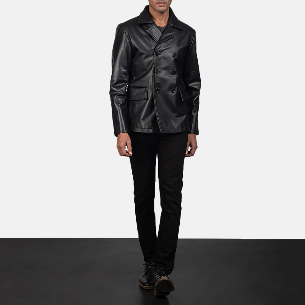 Mr. Bailey Black Leather Naval Peacoat