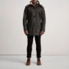 Nolan Distressed Black Leather Duffle Coat
