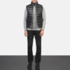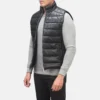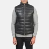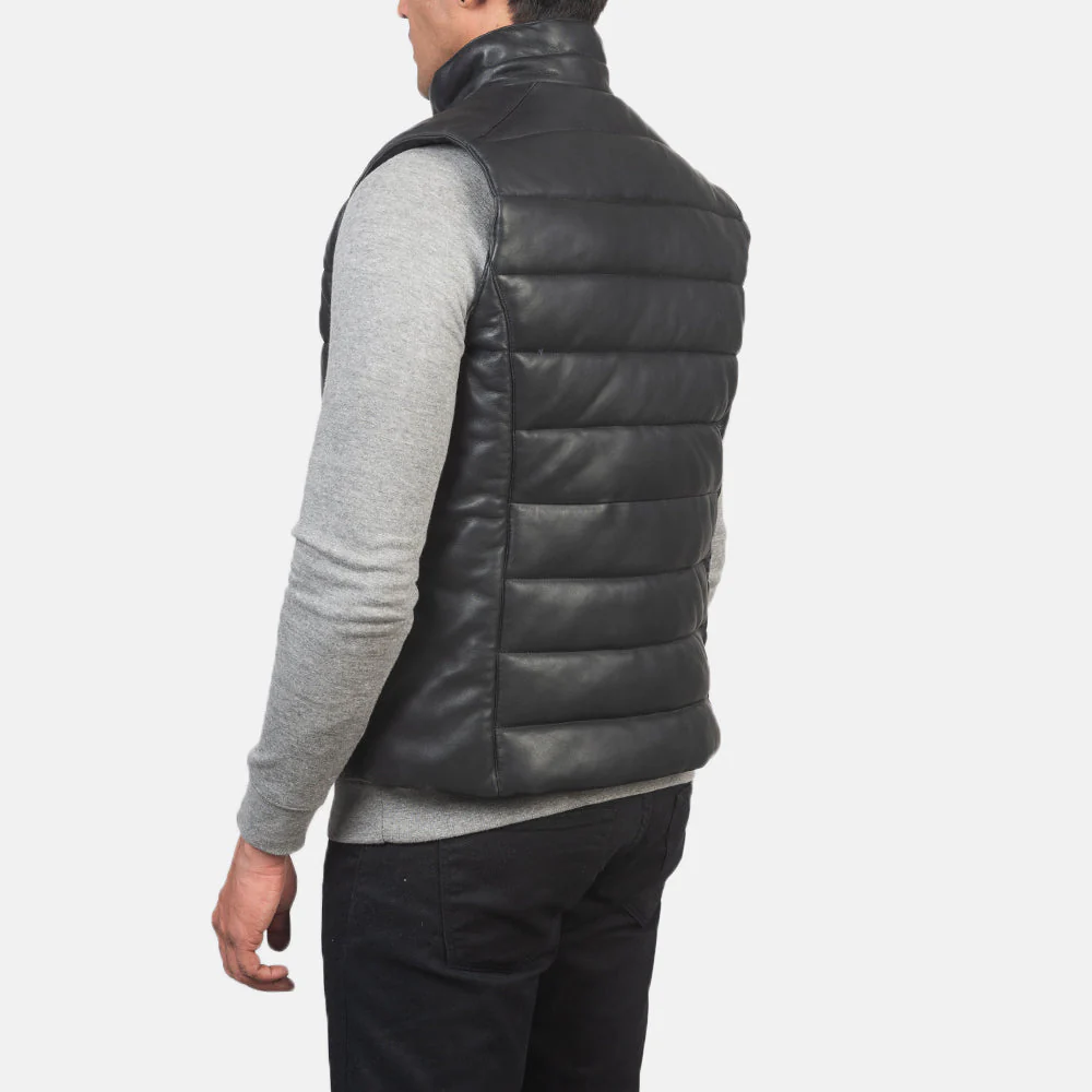 Reeves Black Leather Puffer Vest