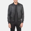 Vaxton Black Striped Hybrid Varsity Jacket